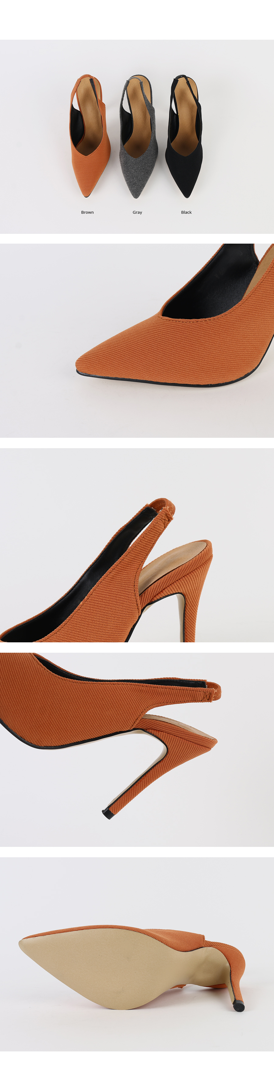 DETAILS - 소재 : 패브릭 - 컬러 : brown,gray,black - 피팅감 : 정사이즈 / 무게 : 보통인편 - 착화감 : 슬링백이 밴드로 되어있어 편해요:) - 모델피팅 : 235