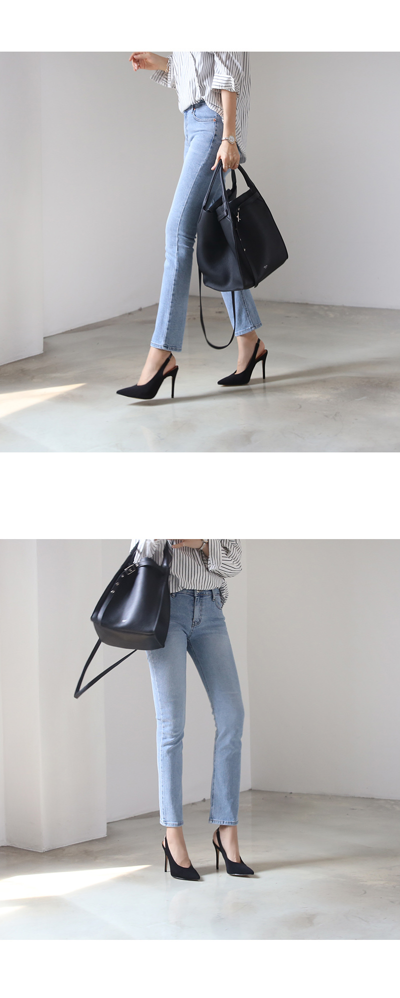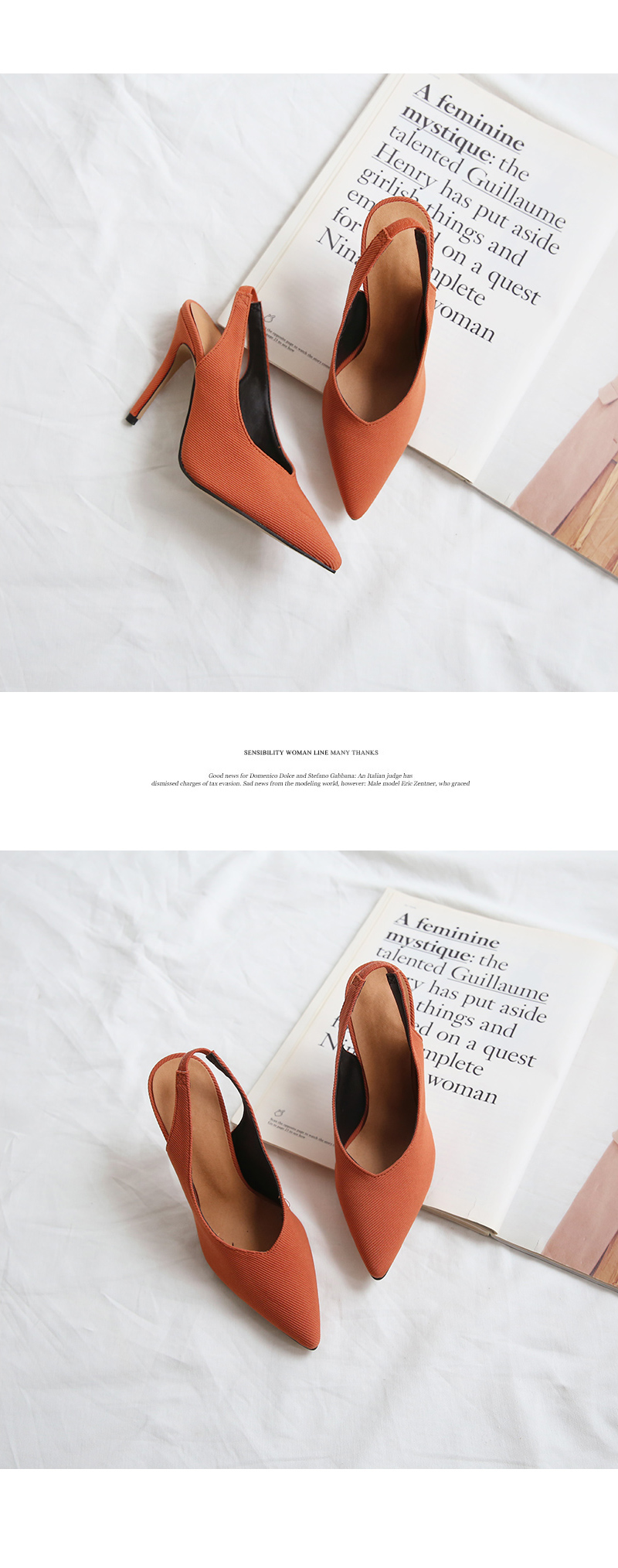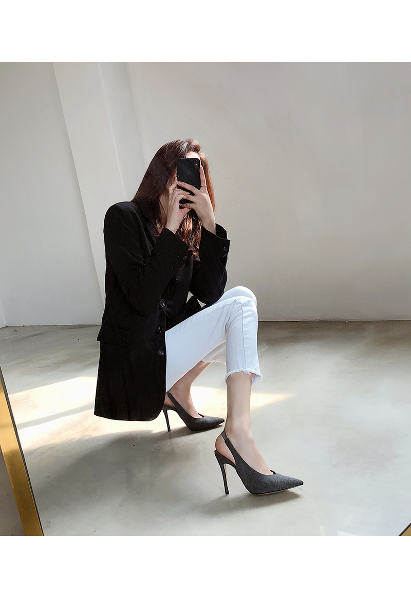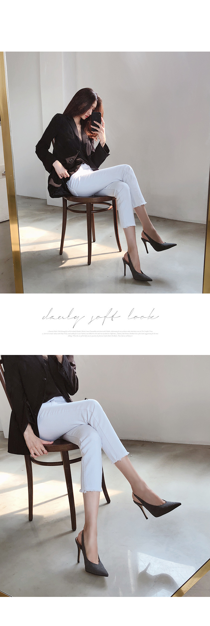 10cm의 킬힐 높이지만 불편하지 않은 착화로 데일리로 즐겨봐도 무리가 없으며 코튼소재로 제작되다보니 캐쥬얼한 스타일링에 잘 녹아듭니다.