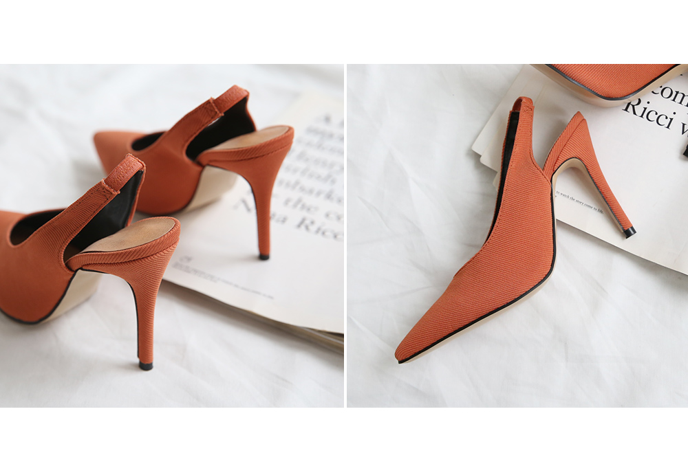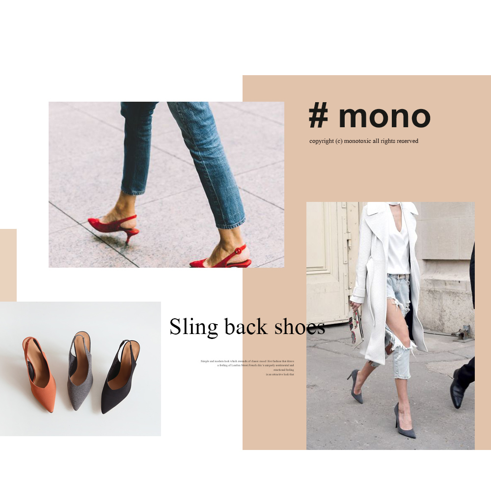 코튼소재에 결이 느껴지는 패브릭으로 커버업 된 슬링백 펌프스입니다.