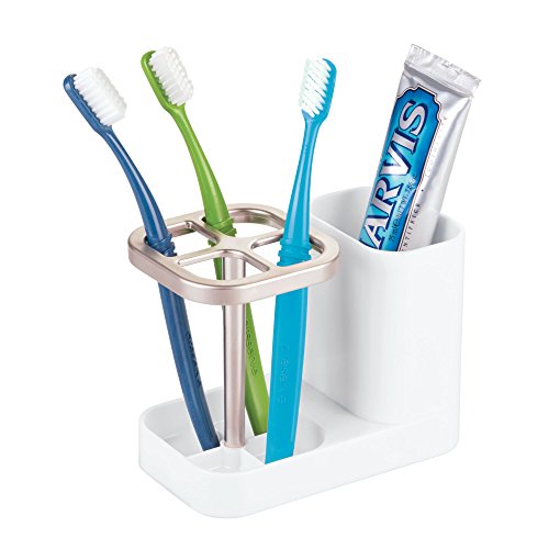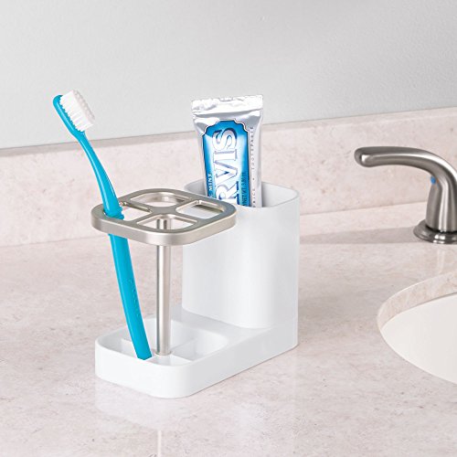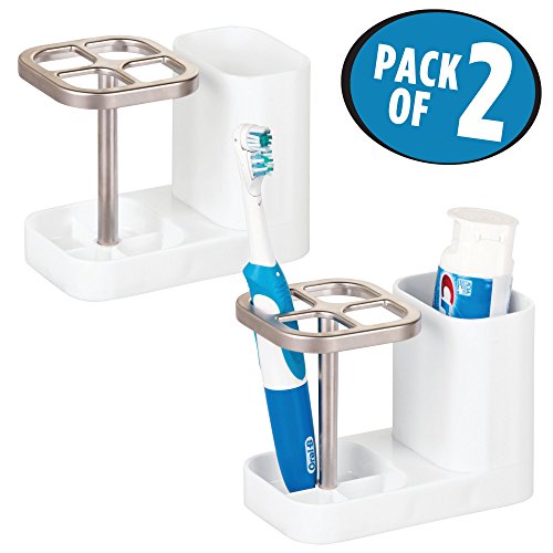 mDesign Bathroom Dental Organization Center for Toothbrush or Toothpaste - White/Satin