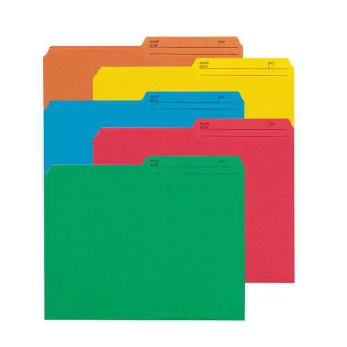 -. Feature : An economical way to file your documents / Tab P.R.Inted with "NAME/NOM; NO." on both sides / An office necessity / Available in a variety of colors / Contains 10% recycled content, 10% post-consumer material