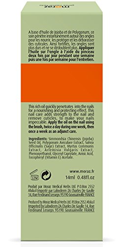Actively antiseptic Rich in naturally medical herbs and oils, Moraz Nail Treatment Oil harnesses the power of nature to treat nail problems at the source. Our solution contains 99% Polygonum Extract, Artemisia vulgaris, Myrtus communis and Salvia officinalis.