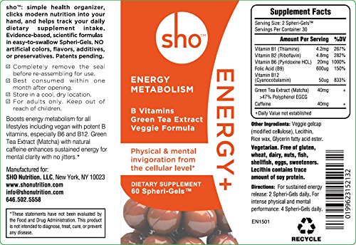 -. Feature : EASY REFILL: This is the easy to refill container of 60 vegan Spheri-Gels / 1-month supply for your sho Nutrition dispenser. / SMALL GELS: No more horse pills or hard to swallow capsules! / MOST IMPORTANT B VITAMINS: Get a high dose of Vitamin B1, B2, B6, B9 and B12. No pixie dusting here. Only clinically backed doses to fight low energy, poor memory, moodiness, fatigue, and other issues. / MATCHA FOR FAT BURNING & ENERGY: Calorie-burning metabolism and reducing free radical formation. / CLEAN & HEALTHY: Vegetarian. Free of gluten, wheat, dairy, nuts, fish, shellfish, eggs, sweeteners, artificial flavors or colors.