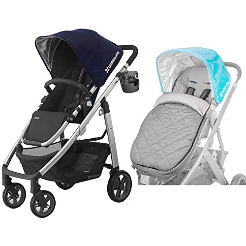 Studio : UPPABABY Publisher : UPPABABY Binding : Baby Product Product Description Parenting is full of adjustments like learning to function on little sleep and never leaving the house again without an arsenal of supplies. Fortunately for parents there's been no compromising with the CRUZ. Its streamlined design gives you more without weighing you down. So stroll down bumpy city streets, maneuver around crowded malls, load your basket with your diaper bag, toys, groceries and whatever else you need. Relax, the world is still your oyster. The CozyGanoosh is the ultra-plush and heavyweight footmuff to keep your child even warmer in less than desirable conditions. Now you can stroll with ease knowing your child has the ultimate coverage.Features: Suitable from 3 months to 50 lbs Compact stroller frame Full size front and rear facing toddler seat One-handed multi-position recline Telescoping handlebar Extendable UPF 50 Sunshade with a softer, smoother material Adjustable canopy One-hand release, pivoting bumper bar for easy loading X-Large easy-access basket with 25 lb. weight limit One-step fold, with or without seat attached All weather protection with included Toddler Seat Rain Shield and Bug Shield Suitable from birth with the Infant SnugSeat or Universal Bassinet (Sold Separately) Performance Travel System compatible with MESA Infant Car Seat - direct attachment, no adapters necessary (Mesa Car Seat Sold Separately) 0
