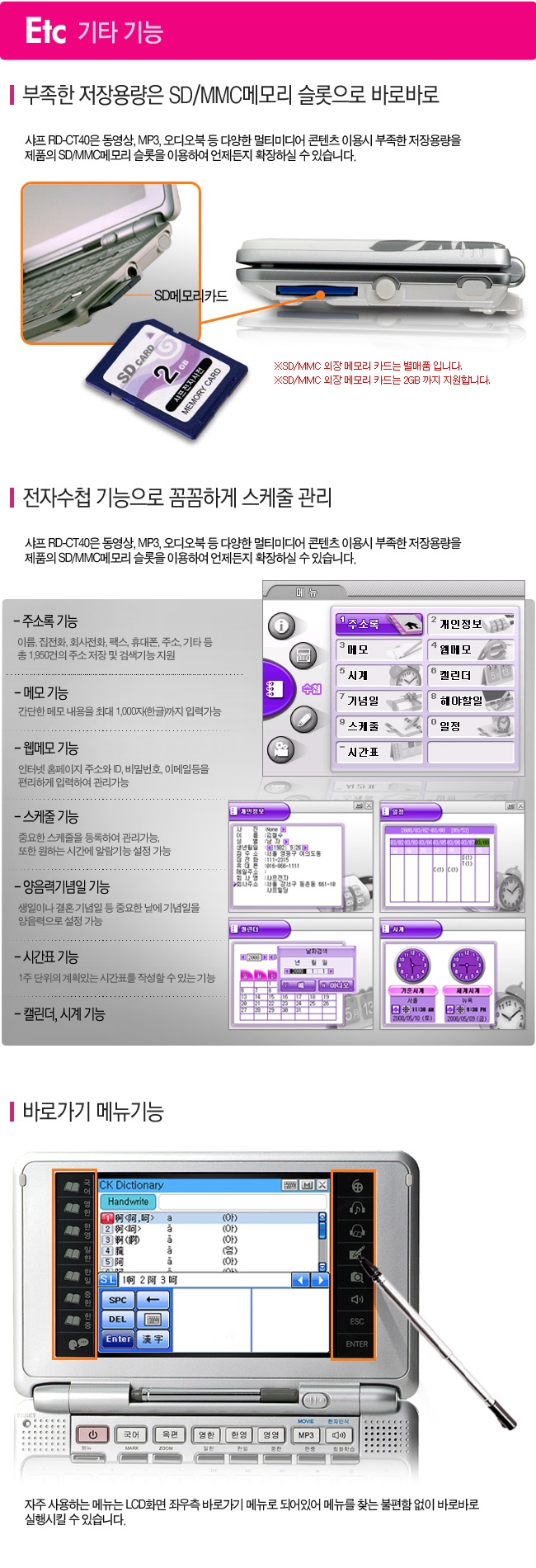 | 메모리 | ● 수첩용 메모리 : 512KB(플래시 메모리) | |