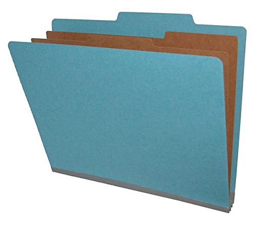-. Feature : This classification file folder has two dividers and six filing sections. / It has a 2/5 Cut right-of-center top tab for drawer filing. / It is letter size to hold 8-1/2" x 11" documents. / This folder is made of 25 pt light blue pressboard stock and has two 17 pt kraft dividers with duo fasteners. / BUY 5, SAVE 10%