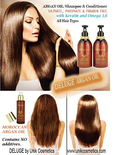 DELUGE - Moroccan Argan Oil Shampoo and Conditioner. Sulfate, Phosphate and Paraben Free. Keratin and Omega 3,6