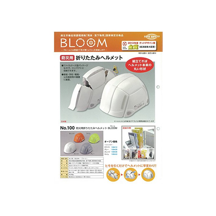 원본상품명: TOYO 防災用折りたたみヘルメット ブル?ム ホワイト No.100