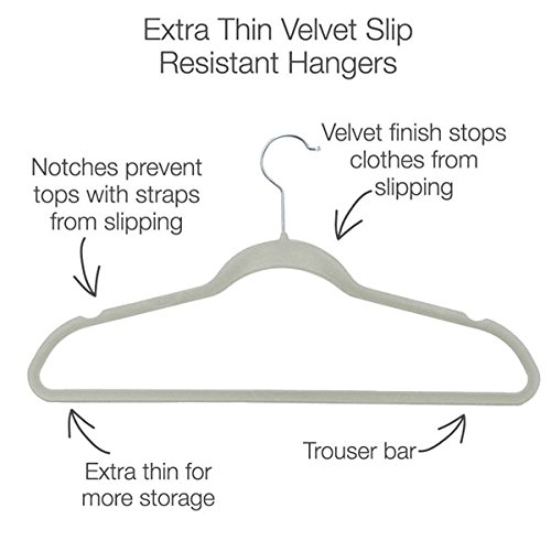-. Feature : ★SWIVEL HOOK: 360degree swivel hook, Ultra Slim, Stylish Appearance. / ★NON-SLIP: Soft smooth flock finish and end grooves design, non-slipping and clothes protection and keep them neat, prevents Clothes from Slipping, easy for ladies to hang their Skirts, Loops, Straps, etc. / ★HIGH STRENGTH: Strong & Broad Hangers, Suitable for Heavier Clothes Like Suits or Jackets. / ★SPACE SAVING: Create More Usable Wardrobe Space, these hangers are ideal in spaces with too many clothes to hang: college dorms, small closets, large closets bustling with garments. / ★LARGE QUANTITY: Pack of 50, you will be able to provide a hanger for all of your articles of clothing.