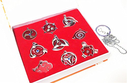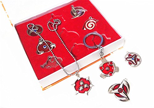 Anime Naruto Shippuden 9 Pieces Cosplay Konoha Necklace Pendant Keychain Metal New in Box
