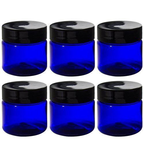 Cobalt Blue 1 oz PET Plastic Jar (6 pack) + Travel Bag