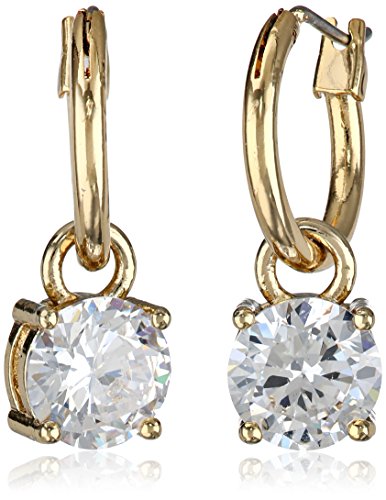 Anne Klein "Gold Update" Gold-Tone and Crystal Hoop Drop Earrings