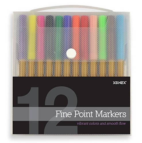 Product Description12 Bright, fine point markers are washable and non-toxic.?Durable clear case with expandable handle. Brilliant colors!0