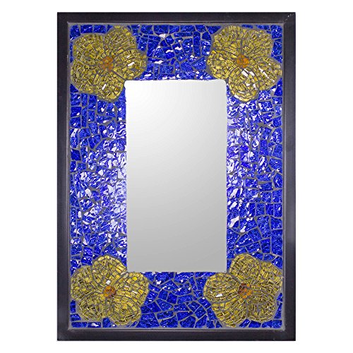 NOVICA Mosaic Stained Glass and Forged Iron Wall Mounted Mirror, Blue, 'Sapphire Sierra'