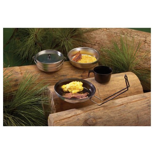 Product DescriptionThe Texsport Five-Piece Non-Stick Aluminum Mess Kit weighs under 1 lb. All pieces nest together compactly. Kit contains:.0