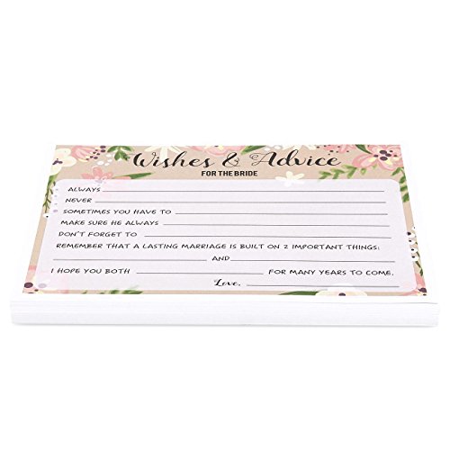 Marriage Advice and Well Wishes Cards for the New Mr. and Mrs. Bride and Groom, Wedding Reception and Bridal Shower Game Activity Cards, Includes 50 Vintage Rustic Floral Cards - 5 x 7 Inches