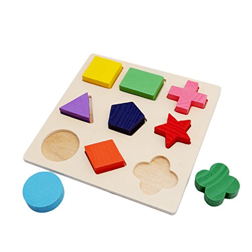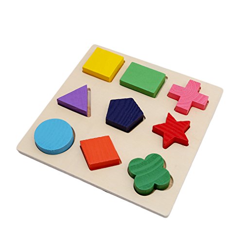 (H_US000)/Puzzles/Pegged/DIRECT FROM USA/HS Baby Kids Wooden Preschool Shape Puzzle Geometry Block Puzzle Montessori Toy (Pattern 1)
