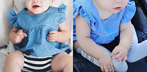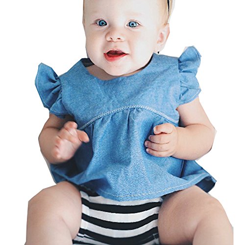 -. Binding : Apparel -. Brand : ONE'S -. Color : Blue -. Department : baby-girls -. Feature : Brand New Infant Baby Girls' Jersey Denim Dress with panty,we can make sure the quality / Color:Blue denim shirt with black white stripe pantie, very cute baby girls Denim outfits / Size:70/80/90/100,different 4 size,pls choose a size after check the size chart below.Unisexy babys baby shower gift apparel / Fabric:Denim top shirt with cotton panty / What you will get:1set baby girls denim outfits -. ProductGroup : Apparel -. ProductTypeName : SHORTS -. Title : 2PCS Infant Baby Girls Denim Butterfly Sleeve Tshirt Top+Striped Short Sunsuit Outfits