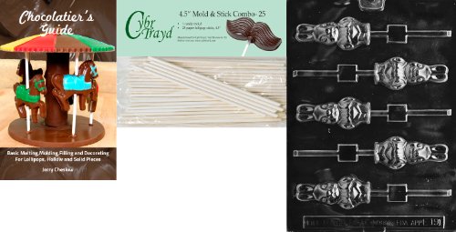 Cybrtrayd 'Bunny with Jacket Lolly' Easter Chocolate Candy Mold with 25 4.5-Inch Lollipop Sticks and Chocolatier's Guide