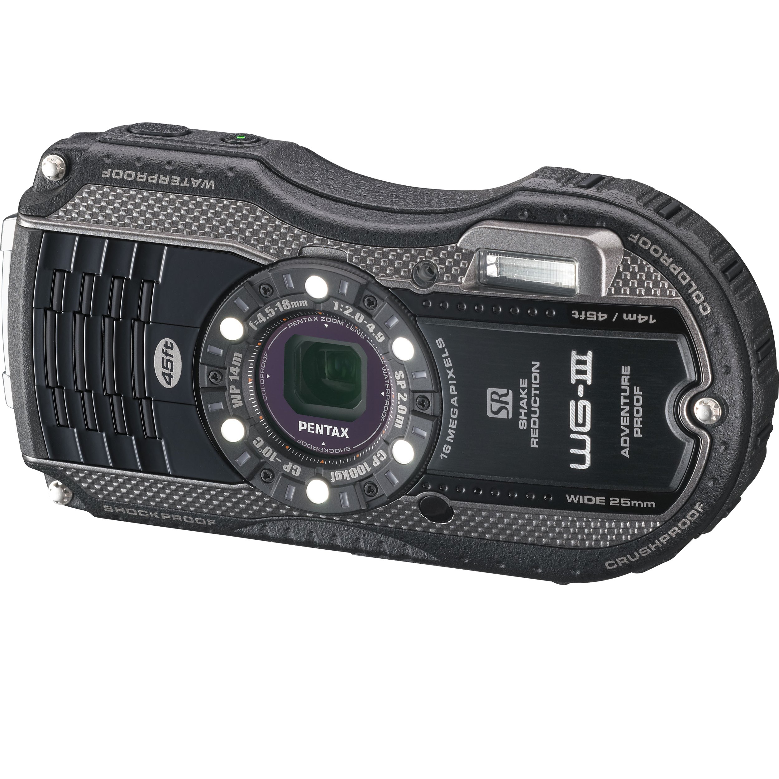 PENTAX Waterproof Digital Camera PENTAX WG - 3 Black 1 cm Macro Macro Stand Included Throttle Open F2.0 PENTAX WG - 3BK Toughness body expands the shooting field further.