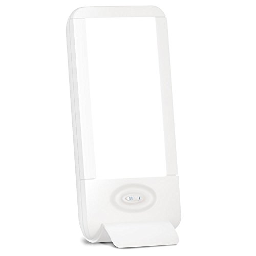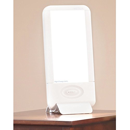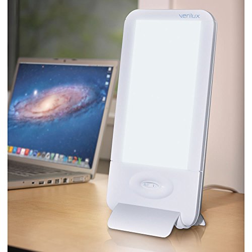 Studio : Verilux Publisher : Verilux Binding : Health and Beauty Product Description This desktop light delivers 10,000 lux of daylight spectrum light to counteract the effects of work fatigue, jet lag, and seasonal change. Just 30 minutes of exposure to the light from this slim box can block the release of melatonin, a sleep hormone. With less melatonin, people find they have increased energy levels and alertness. The light's small 5 1/4" x 3" footprint allows it to fit easily on work surfaces, unlike previous generations that take up significant desktop space. The light uses a special 36-watt bulb rated for 10,000 hours, electronic ballast to ensure buzz-free operation, and flicker-elimination technology that prevents electromagnetic fields. Plugs into AC. 13 1/2" H x 6 1/4" W x 2" D. (2 lbs.) 0