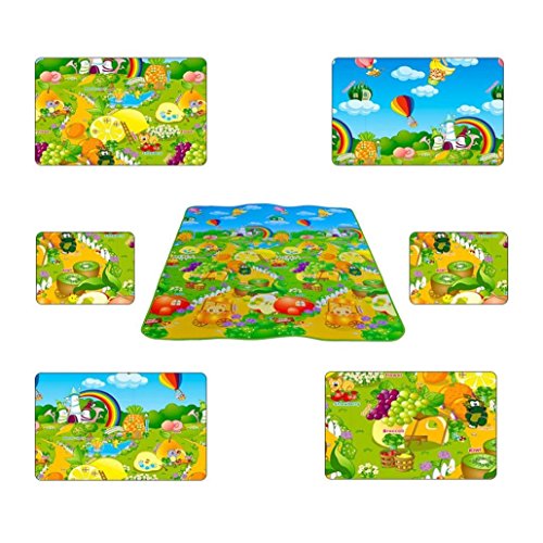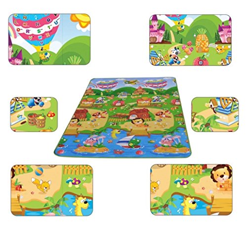 -. Feature : This is a multi-function products / Apply age: under the age of 3. / It can be used in outdoor balcony sitting room, mountain hiking, fishing, outdoor picnic, it is suitable for use on any season. / Material:PE;Size:200*180*0.5cm / Educational pattern,let the baby in the reptile,inspire intelligence,baby more clever!