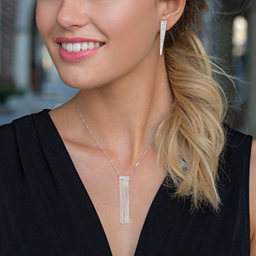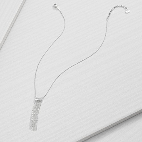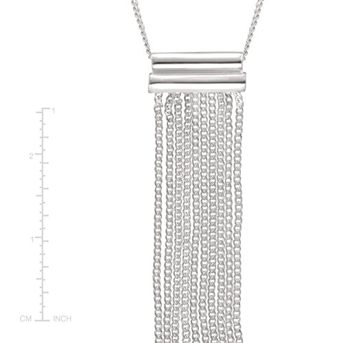 Give your neckline some extra flair with the Modern Fringe Necklace which features a fringe pendant with swingy details that move when you do. Pair it with a printed top or a structured blazer-whichever fits your style best! The curb-style chain measures 18 inches in total length (including a 2-inch extender), finished with a lobster clasp. Piece comes with a ".925" sterling silver stamp as a symbol of guaranteed product quality.