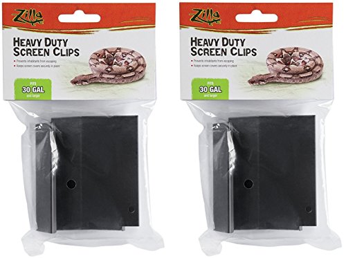 (2 Pack) Zilla Reptile Terrarium Covers Heavty Duty Screen Clips, Large 30Gallon or Larger, 2 Clips each