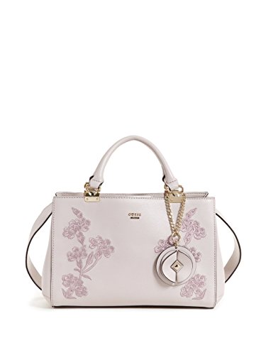 A floral embroidered design takes this faux-leather satchel to must-have status, complete with silver-tone hardware. Top zipper opens to logo-print lining with zip and multipurpose pockets. Divided compartments and removable circle charm.Feature