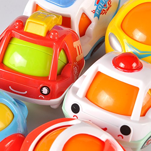 -. Feature : 6 Pack Mini Rolling Cartoon Car Vehicles for Toddlers / These Vehicles Roll without any Tiny Wheels; 100% Safe for Babies / Includes: Race Car, Fire Truck, Police Car, Ambulance, Airplane, Boat / Each Vehicle contains fun rattle beads for rattling sound effects / Perfect for little hands to grasp. Each vehicle measures 2.5 inches