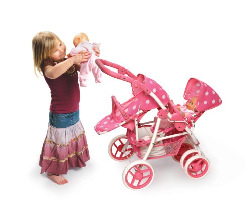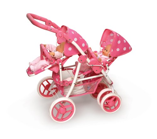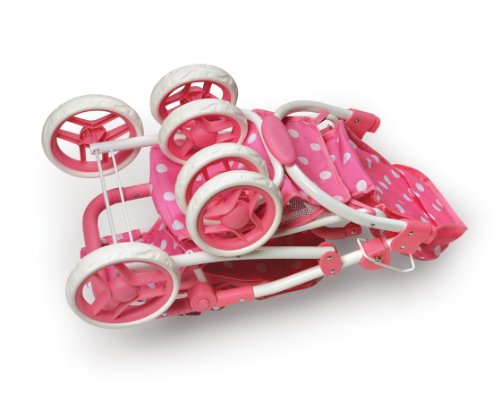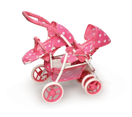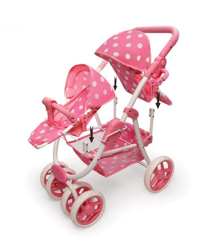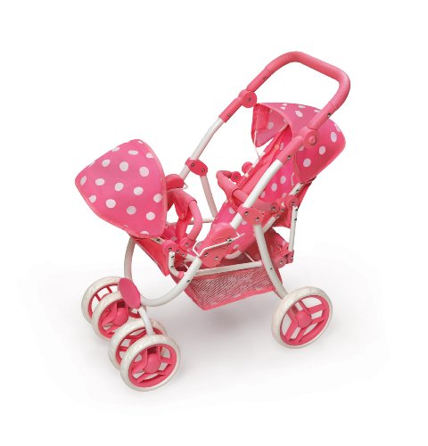 REVERSIBLE DOUBLE DOLL STROLLER - PINK POLKA DOTS