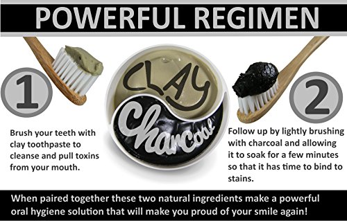 POWERFUL REGIMEN: First brush your teeth with the clay toothpaste to cleanse and pull toxins from your mouth, then follow up by lightly brushing with charcoal and allowing it to absorb for a few minutes so that it has time to bind to stains. When paired together these two natural ingredients make a powerful oral hygiene solution that will make you proud of your smile again!