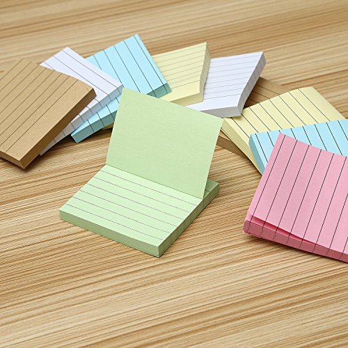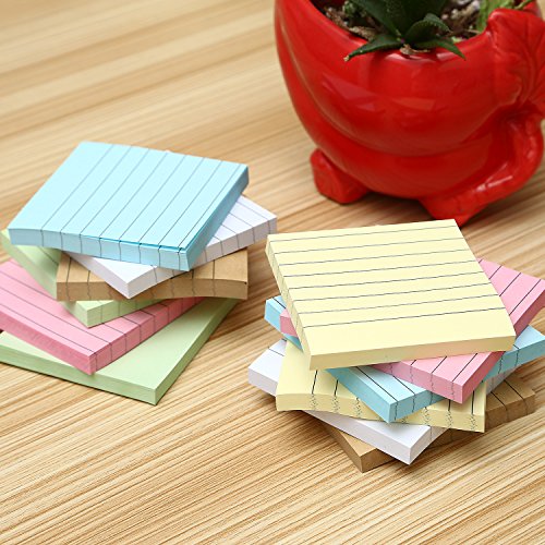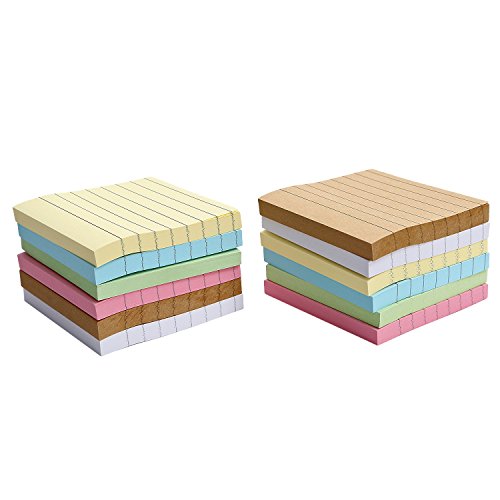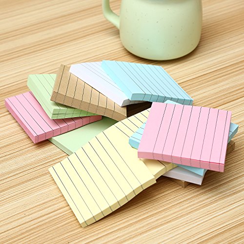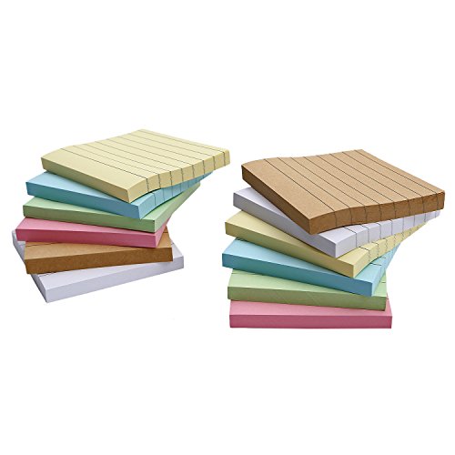 Colorful Sticky Notes, 3 x 3 Inches,Lined, 12 Pads/Pack, 80 Sheets/Pad