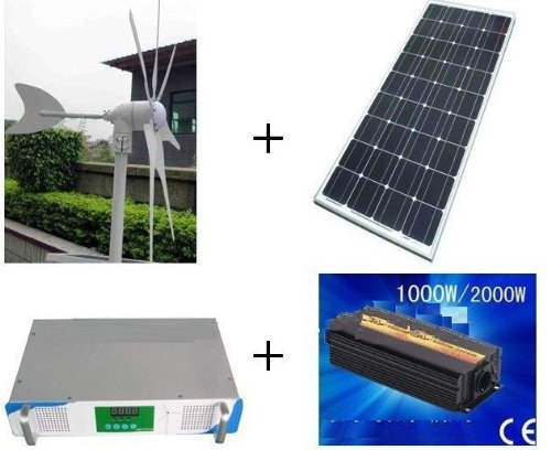 -. Feature : 1.wind turbine 24v 300w / 2.mono solar panel 18.5v 100w 2pcs / 3.solar and wind hybrid controller 24v 1000w / 4.pure sine wave inverter 1000w