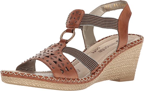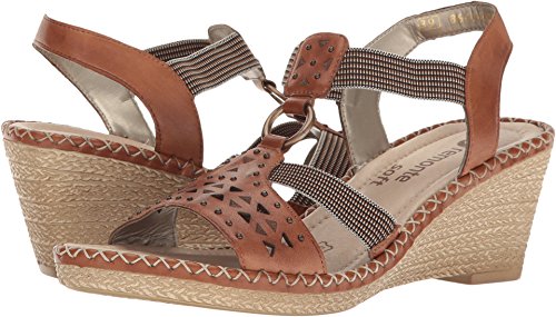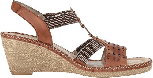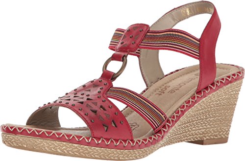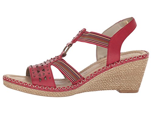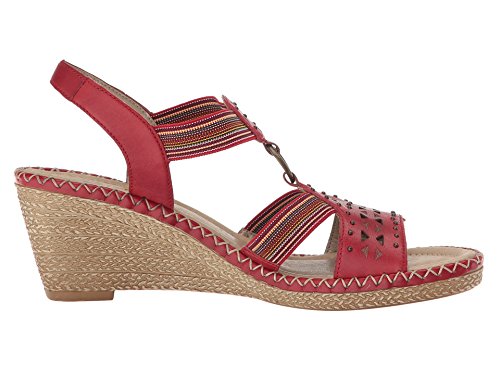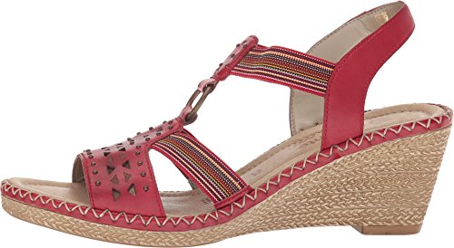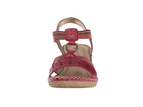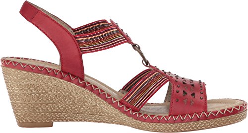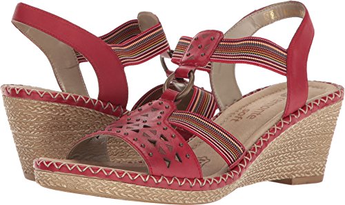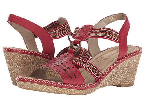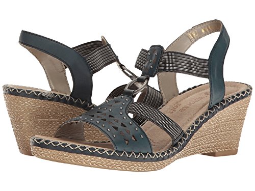 Binding : Apparel Product Description The D6751 Ursula 51 wedge sandal from Rieker® is perfect for that summer night out. Leather upper with a hook-and-loop closure for easy on-and-off wear and a secure fit. Soft textile lining ensures an abrasion-free environment for all-day wear Generously cushioned footbed massages the foot with each and every step. Raffia-wrapped wedge and midsole provides a timeless look and visual appeal. Synthetic outsole delivers long-lasting durability on a variety of surfaces. Measurements: Heel Height: 2 1?2 in Weight: 10 oz Platform Height: 3?4 in Product measurements were taken using size 40 (US Women's 8.5-9), width M. Please note that measurements may vary by size. 0