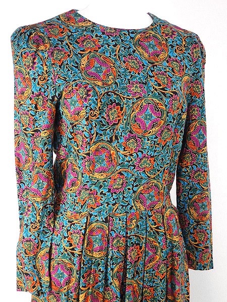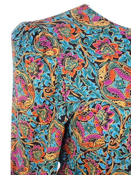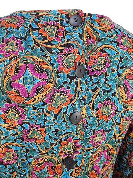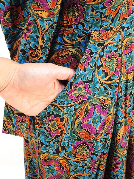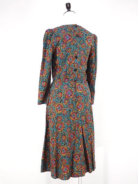 Ladies ブランド- カラー黒・カラフル メール便不可 コンディション★★★ 素材レーヨン 表記サイズ10 実寸サイズ 着丈 111 cm 身幅 40 cm 肩幅 33 cm 袖丈 54 cm ウエスト 66 cm ※ウエスト・ヒップ以外は平置き採寸【code】#b