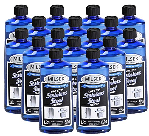 ReleaseDate : 2016-07-16 Studio : Milsek Furniture Polish, Inc Publisher : Milsek Furniture Polish, Inc Binding : Home Product Description Milsek One Step Stainless Steel Cleaner will remove all grease, grime, fingerprints and watermarks from your appliances and help keep them clean for a long lasting shine. Simply apply to a soft cloth and wipe down your appliance followed by a buff with a soft dry cloth. Also great for other surfaces such as; outdoor light fixtures; exterior of outdoor grills and aluminum car wheels. Pack of 16 12-Ounce bottles included. 0