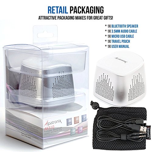Bluetooth Speakers, Alpatronix® [AX310] Ultra-Portable Universal Mini 5W Wireless Bluetooth Speaker w/ Built-in Mic, Volume/Playback Controls, Passive Subwoofer, Rechargeable Battery Compatible with Apple iPhones, iPads, Samsung Galaxy, Android Smart