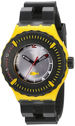 -. Feature : Black silicone strap with yellow plastic case and grey dial / Scratch resistant mineral crystal / Swiss-quartz Movement / Case Diameter: 44mm / Water Resistant To 660 Feet