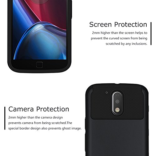 -. Feature : Prefect design for MOTO G4/G4 Plus. / Soft bumper helps absorb shock combined with an anti-slip finish to secure the phone from bumps and drops. / Slim fitting, lightweight and allows convenient access to all functions, cameras, buttons and ports. / Made of high quality hard and durable Plastic + TPU. / Easy snap on/off installation.