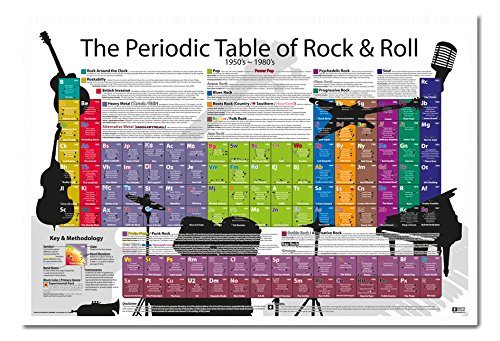 -. Title : Periodic Table Of Rock And Roll Poster Magnetic Notice Board White Framed - 96.5 x 66 cms (Approx 38 x 26 inches)