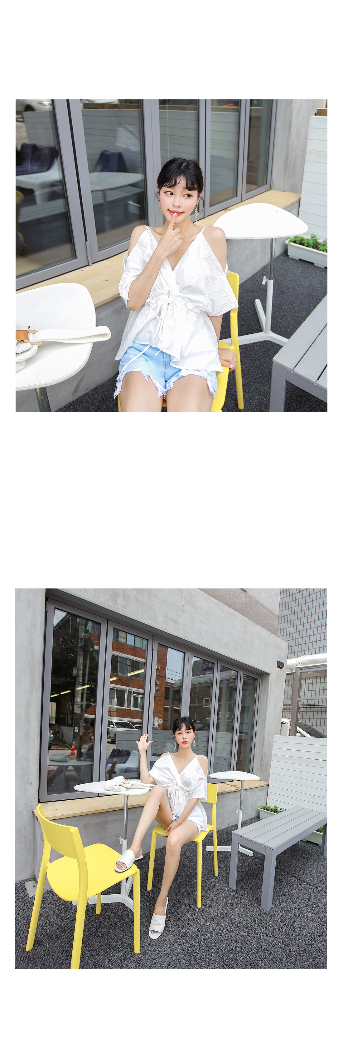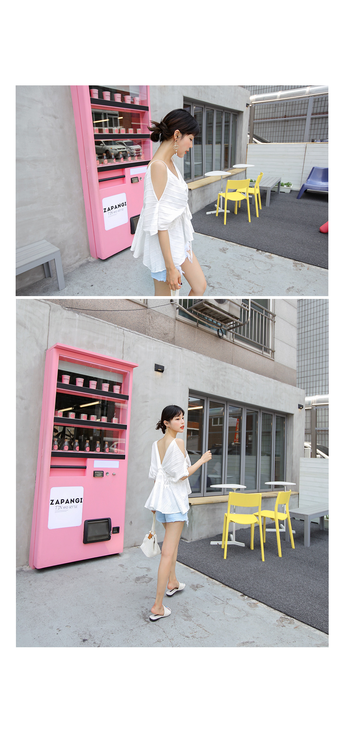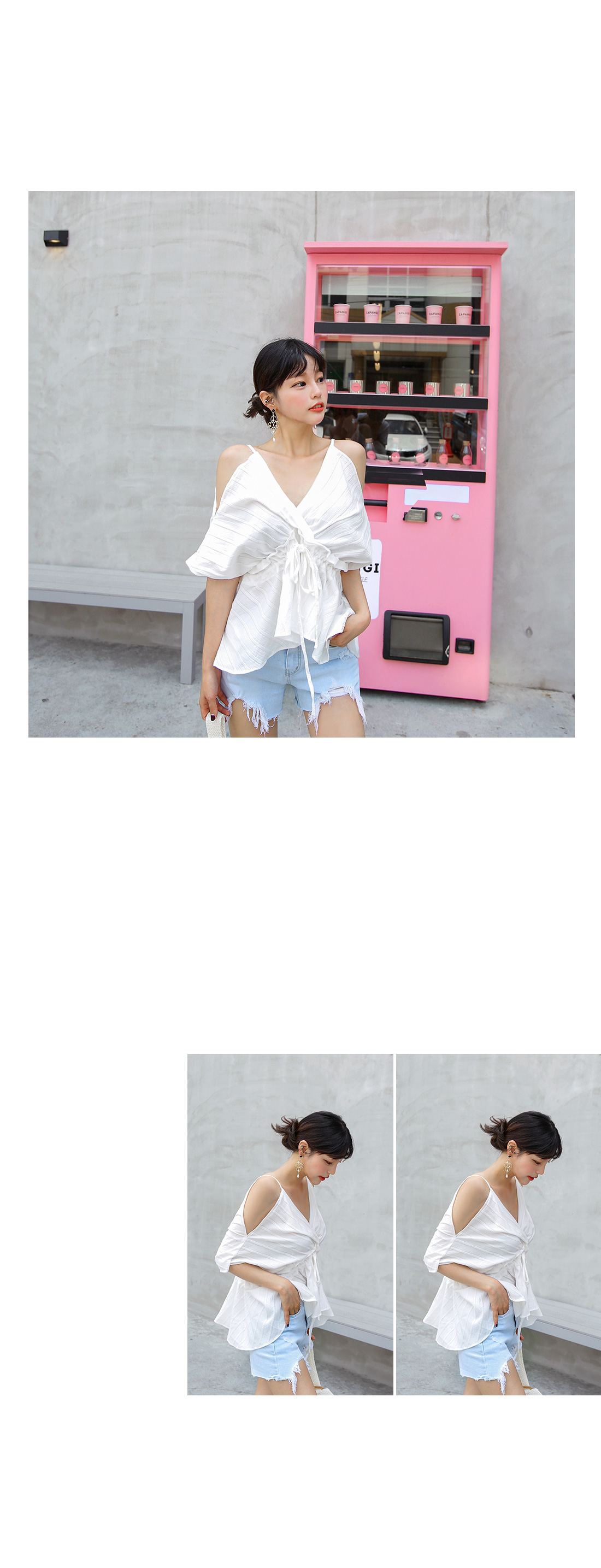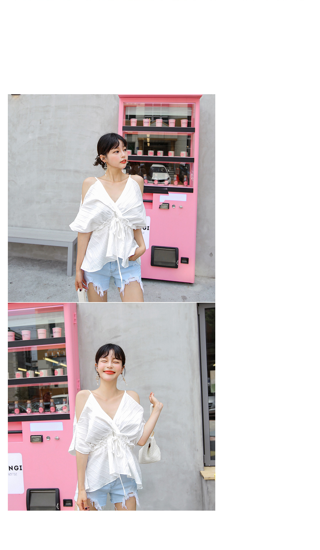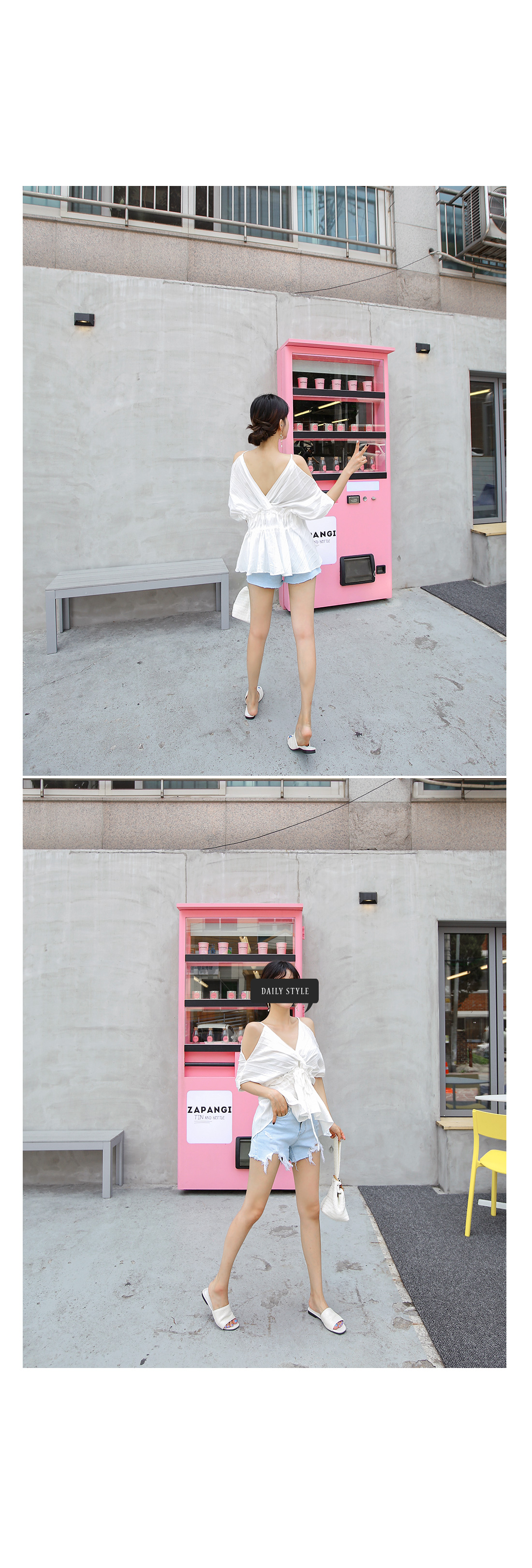 쇄골라인이 드러나는 오프숄더 디자인으로
