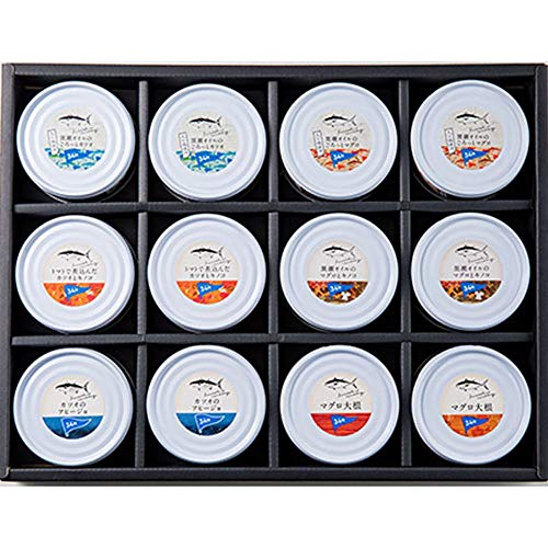 新商品の“カツオと筍のアヒージョ"と“マグロと大根の和風生姜煮"2種類が加わった、一本釣りカツオとマグロの美味しさが味わえる12缶セットです。贈りものにも喜ばれます。