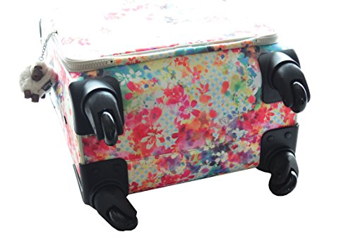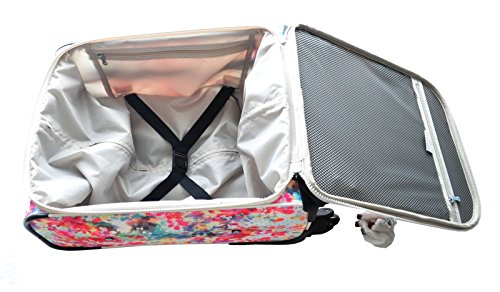 -. Feature : Crinkle nylon, / Adjustable packing straps to avoid creasing / Two front zipped pockets / Four easy spinning wheels, Fully lined interior / Dimensions: 14'' x 22'' x 9'' Weight: 5.38 lbs.