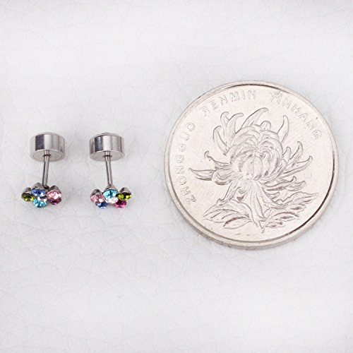 -. Title : LUXU kisskids Colorful Flowers Shape CZ inlaid Stainless Steel Stud Earrings for Kids Womens