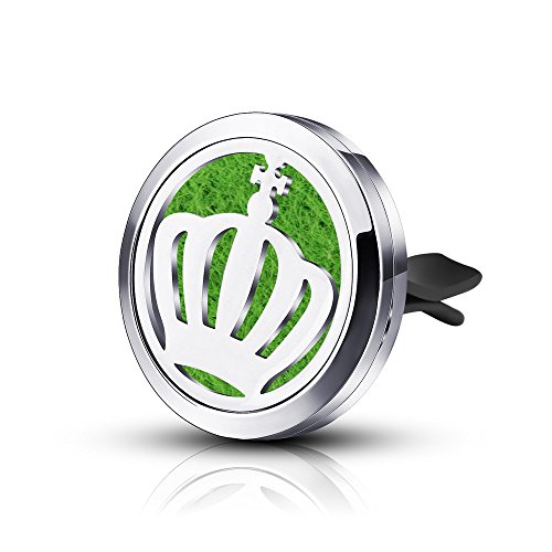INFUSEU Aromatherapy Essential Oil Car Diffuser Stainless Steel Crown Fragrance Locket with Vent Clip & 6 Colours Refill Pads Protable Mini Air Freshener for Office Travel Home Vehicle