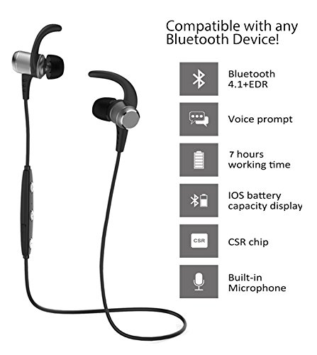 Advanced Bluetooth 4.1+ EDR APT-X audio decode technology provides high-fidelity stereo music and clear speech within 33 feet/10 meters. Built-in microphone ,CVC6.0 noise Isolation technology reduces outside noises, enable clearer microphone sound.