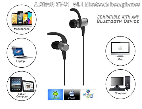 Bluetooth Headphones, Adseon Wireless 4.1 Bluetooth Headset Headphones Magnetic In-ear Earbuds Sweatproof Sports Earpieces Headset Lightweight Stereo Noise Cancelling Earphones with Built-in Mic