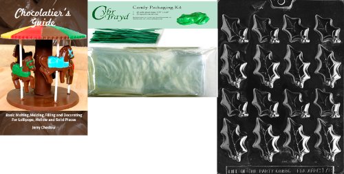 Cybrtrayd Holly Leaves, 2 Sizes Chocolate Mold with Chocolatier's Bundle of 25 Cello Bags, 25 Green Twist Ties and Chocolatier's Guide