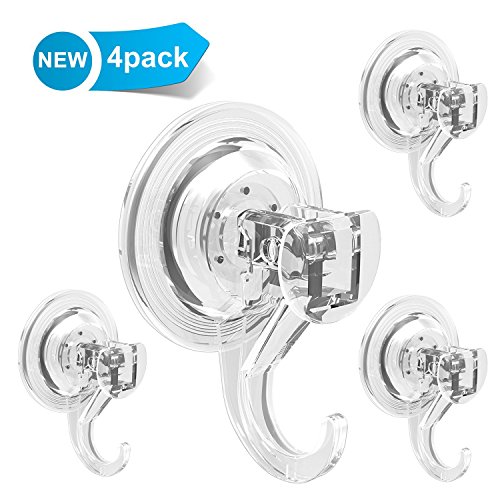 Raylix Suction Hooks, Suction Cup Hooks for Bathroom Shower Wall Kitchen Home Hanging for Towels Bath Robe, Coat Loofah Heavy Duty Suction Hooks Plastic - 4 Pack